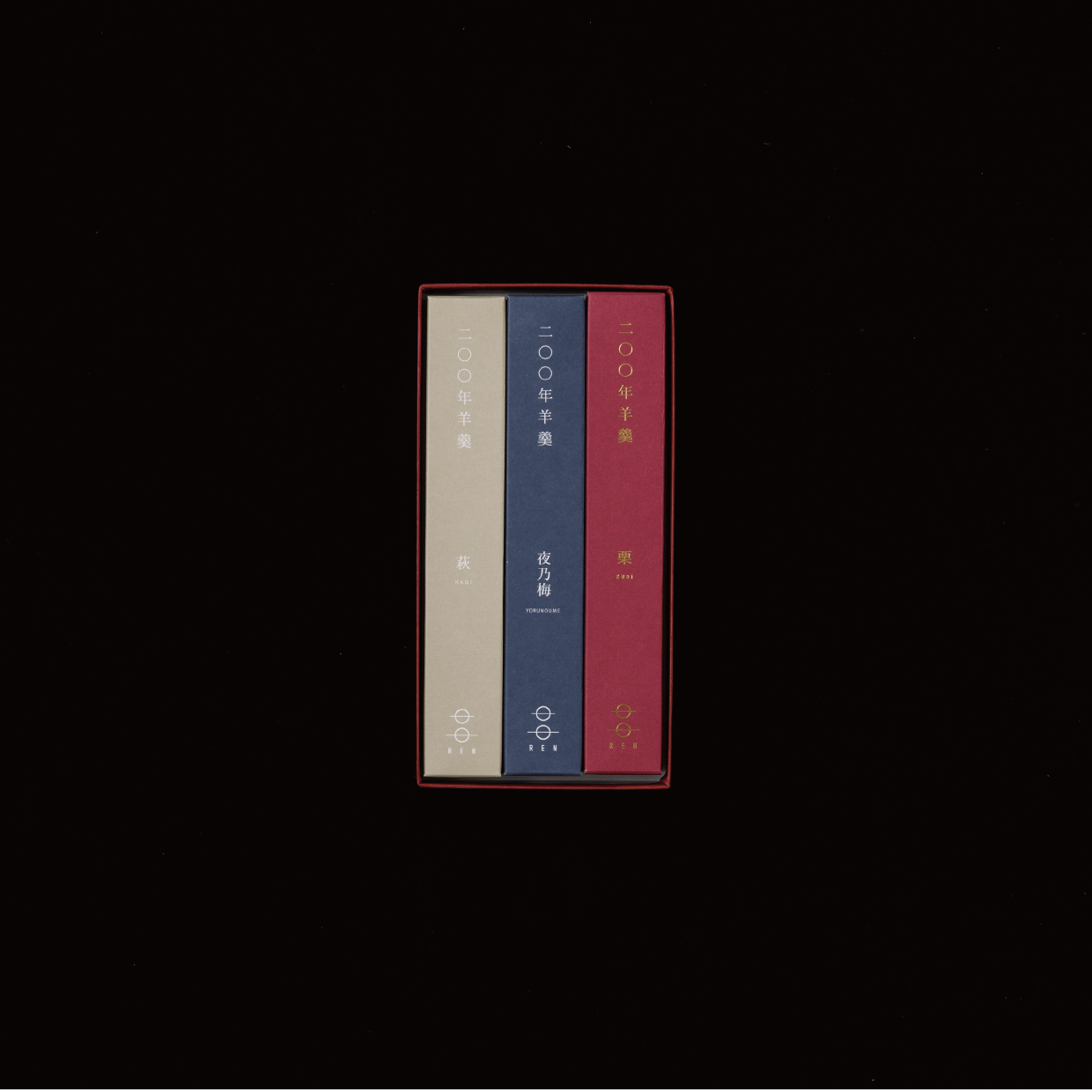 3本入り 夜の梅 1本、 萩羊羹 1本、栗羊羹 1本